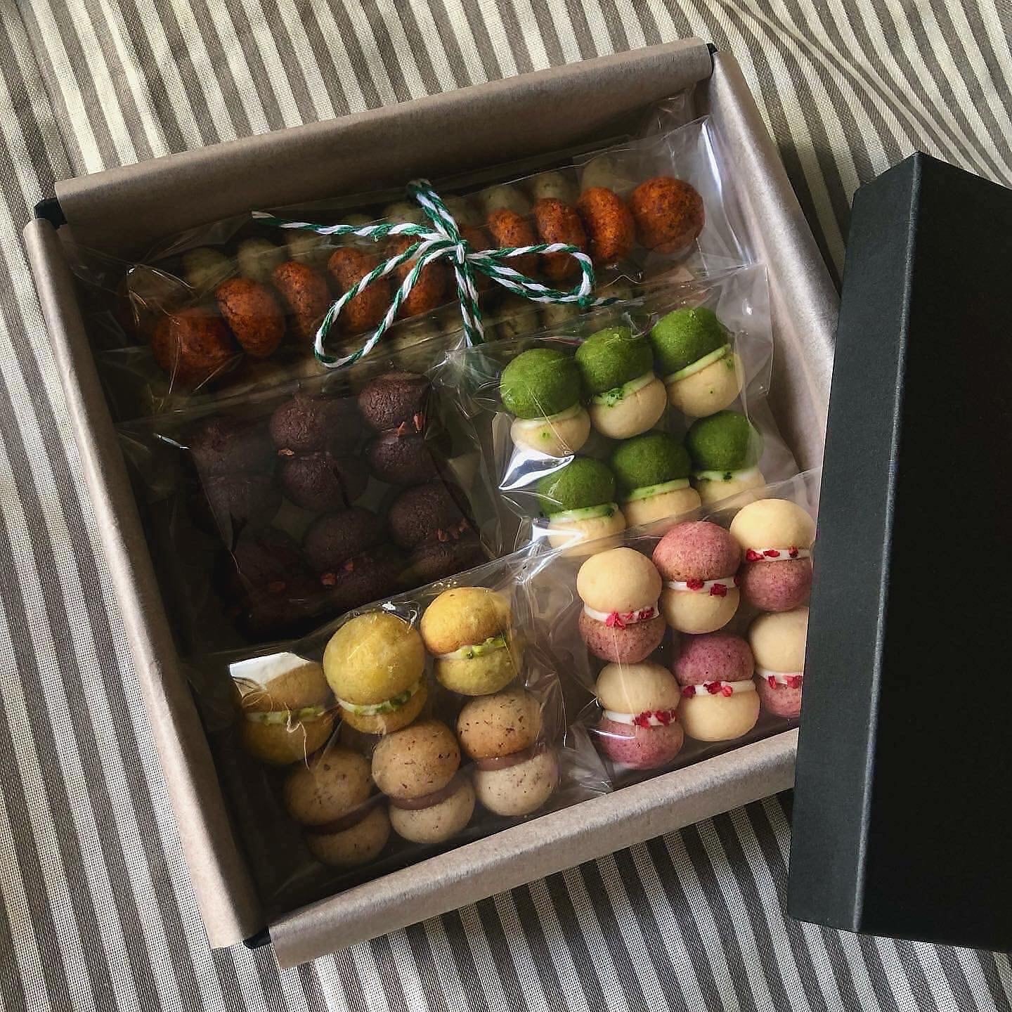 いろとりどりなクッキー8種をシックな黒い箱に詰め込みました。