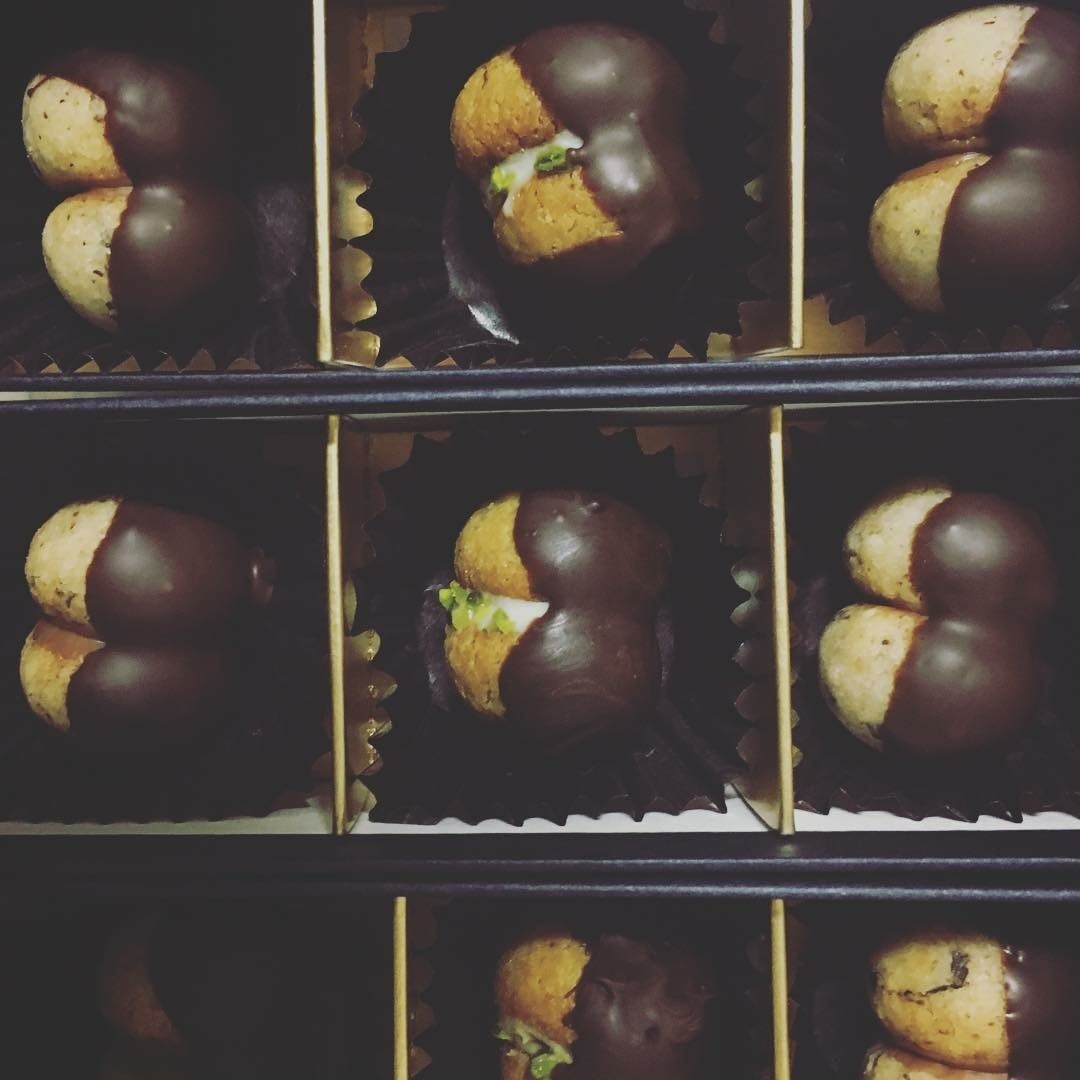 原材料名/国産小麦粉、鳥取大山バター、ピスタチオプードル、ヘーゼルナッツプードル、砂糖、チョコレート