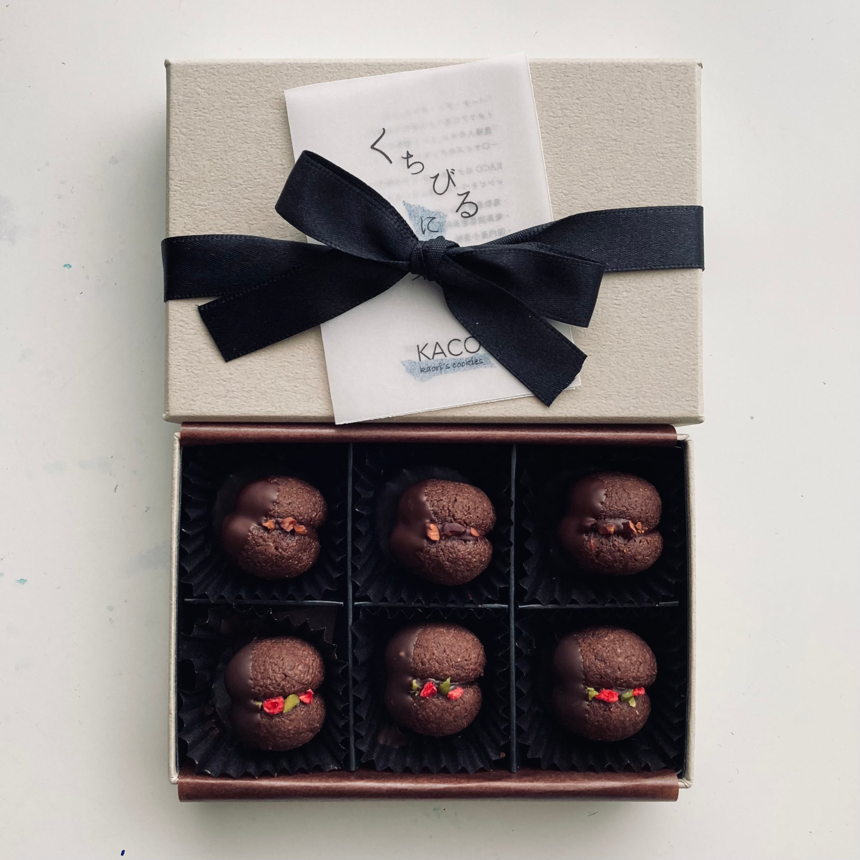 原材料名/国産小麦粉、鳥取大山バター、アーモンドプードル、砂糖、チョコレート、ココアパウダー、カカオマス、カカオニブ、ドライラズベリー、ピスタチオ