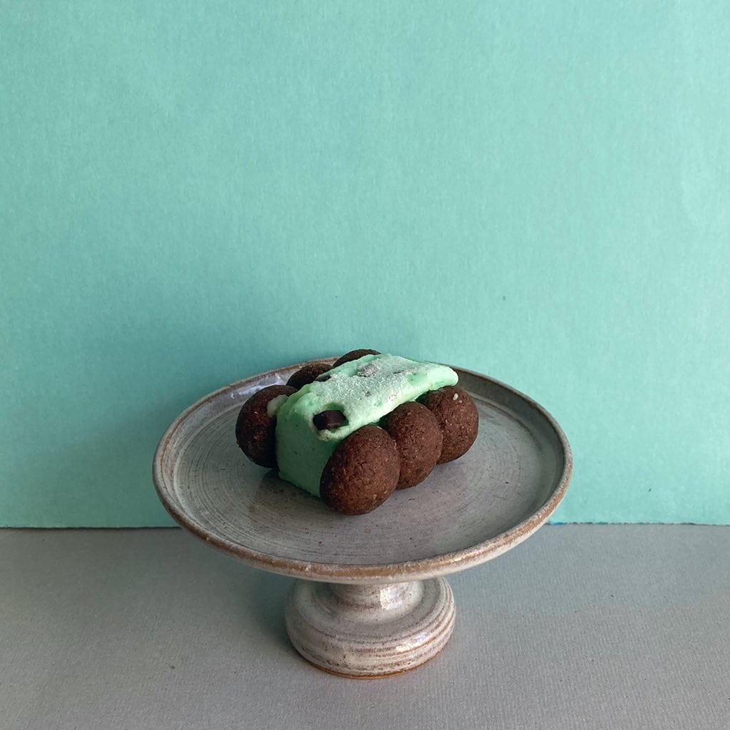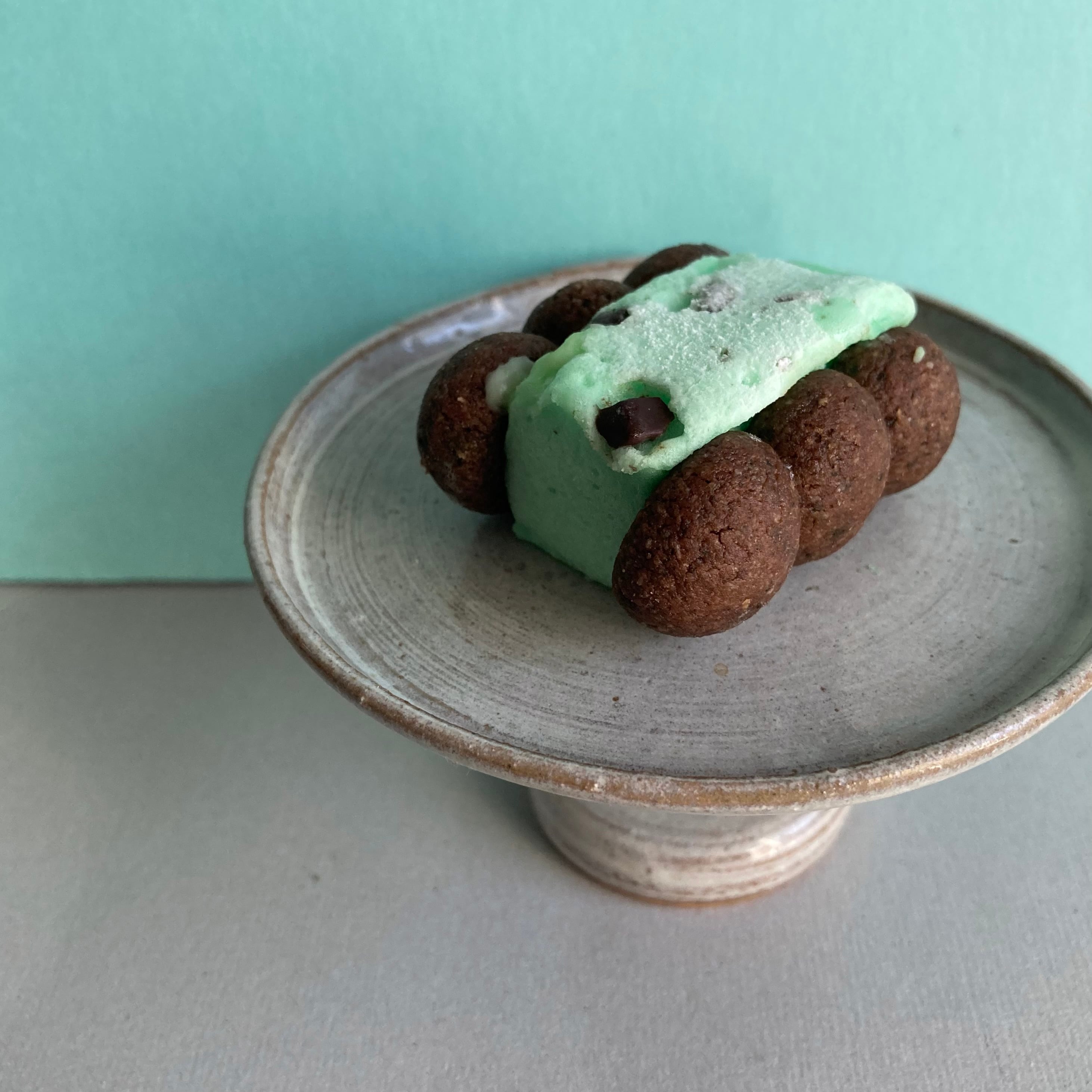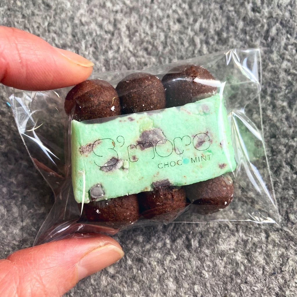 ドライペパーミントを加えて焼き上げたココアクッキーで、ふわふわチョコミントマシュマロをサンドしました。